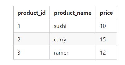 ("product_id", "product_name", "price")