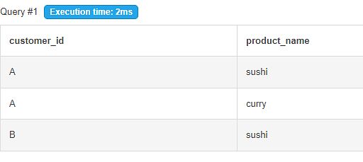 select customer_id, product_name