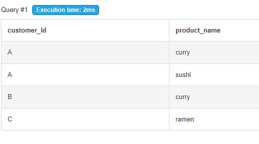 (select s.customer_id, s.order_date, s.product_id, m.product_name, dense_rank() over (partition by s.cutomer_id order by s.order_date asc) as rank