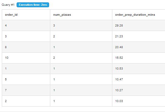 The order that took the longest time to prepare was also the one with most number of pizzas.