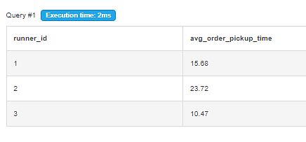 select runner_id,round(avg(mins_to_pickup),2) as avg_order_pickup_time